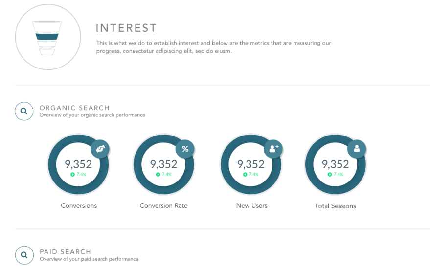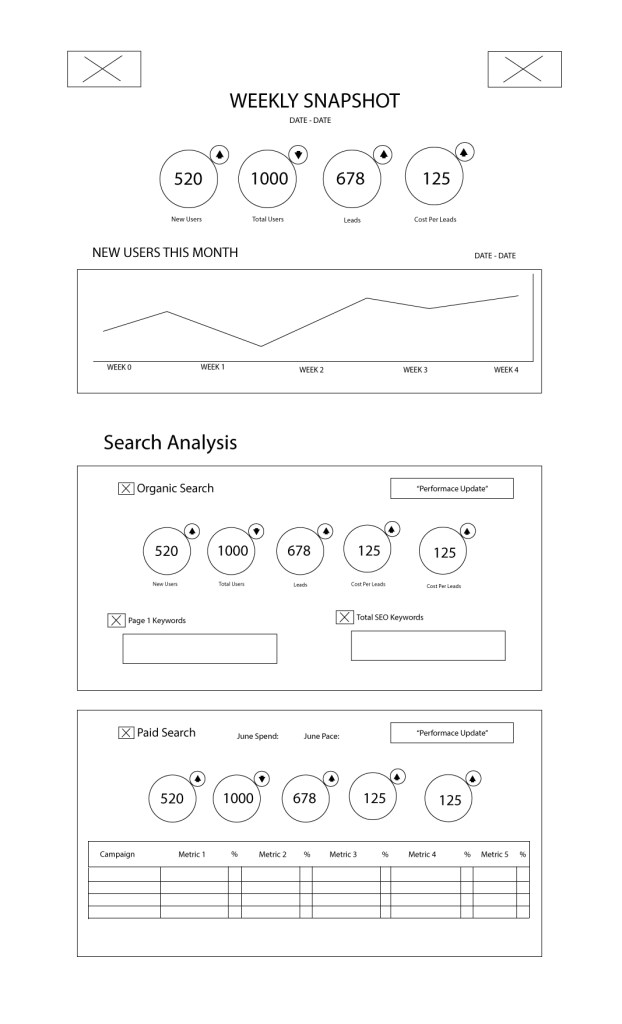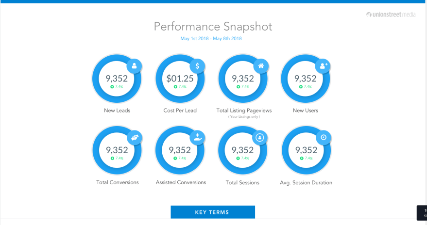 As the Manager, Marketing Operations & Strategy at Union Street Media, I championed an overhaul of our client-facing performance reporting. Ultimately, our clients (real estate agents and brokers) expect their digital marketing efforts to generate leads, but in an industry with a long purchase cycle, it is crucial to communicate to clients how their various digital efforts help move potential customers through the purchase funnel.